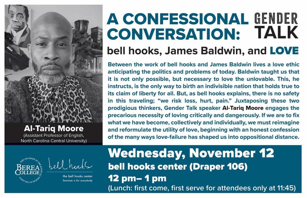 Many thanks and much LOVE to Dr. Shadee Malaklou, Innaugural Director and Founder of The bell hooks Center; Dr. dp patrick, Assistant Professor of Women’s Gender and Sexuality Studies; Dr. LeAnna Luney, Assistant Professor of African American Studies; Dean Travis Albritton, Chaplain, Rev. Jonathan R. Whitfield; and the Berea College students and Faculty.